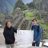 Wir krackelsten ein wenig rum und haben mit den Llamas tausende Fotos gemacht... Und dann sind wir ein Stueck den Machu Picchu (Alter Berg, 3140m) Berg rauf gegangen. Aber wegen dem anhaltenden Nebel sind wir schliesslich umgekehrt. Als wir dann bei den Ruinen war gab es ein mystisches Schauspiel. Der Nebel stieg unheimlich schnell nach oben und gab die Sicht auf die riesige Ruine frei- einfach unglaublich!!! (Und ich empfand das nicht nur so mystisch, weil wir nichts gefruehstueckt hatten...) Voellig bezaubert sind wir also durch die Oberstadt gegenagen und haben uns alles angeguckt.